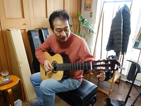 辻さんは若い頃からクラッシックギターをやっていて、今もってるギター(上の写真)も気に入っているけれど、ボサノヴァに合う様な軽やかで弾きやすいギターを探しているそうです。