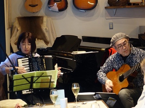 アコーディオンの伊東奈美さんとギターの伊藤卓さんとのデュオです。ユニット名は「いとう音楽研究会」。どちらもいとうさんですもんね。