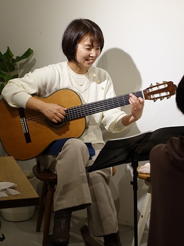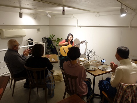 お二人ともボサノヴァを教室に来てから知ったとのことで、渡辺さんは「人前に出るのが嫌いなタイプだったけど、こんな人前でギター1本でライブをするようになるなんて」と言って「性格が明るくなったような・・・人生って分からないものですね」と笑っていました。